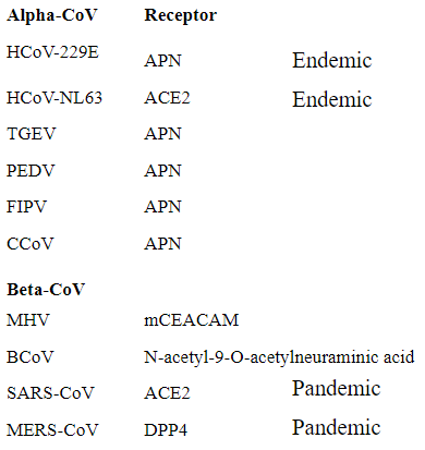 Historic CoV structures and receptors